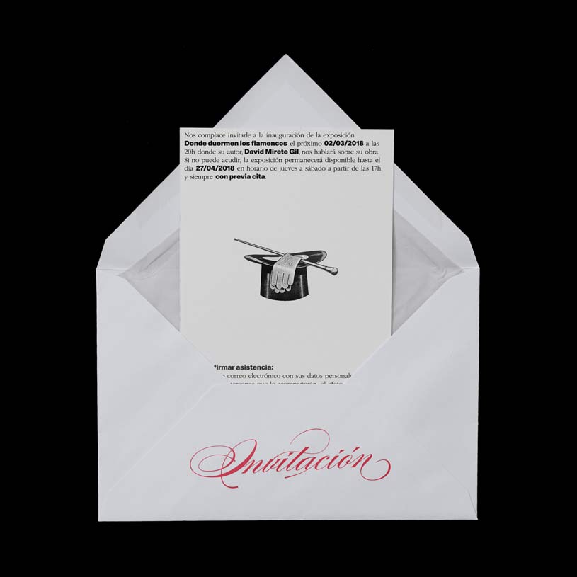 Donde duermen los flamencos (ISBN: 978-84-09-00393-8 © 2018, David Mirete Gil) es el resultado final de un viaje personal que empieza en 2015 y en el que, a través de la fotografía y la poesía, el autor investiga su relación emocional con la pérdida, el territorio y la aceptación.